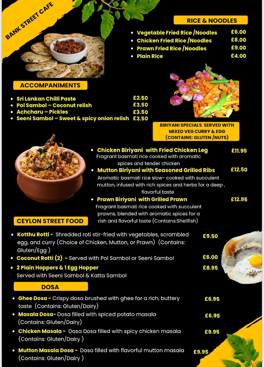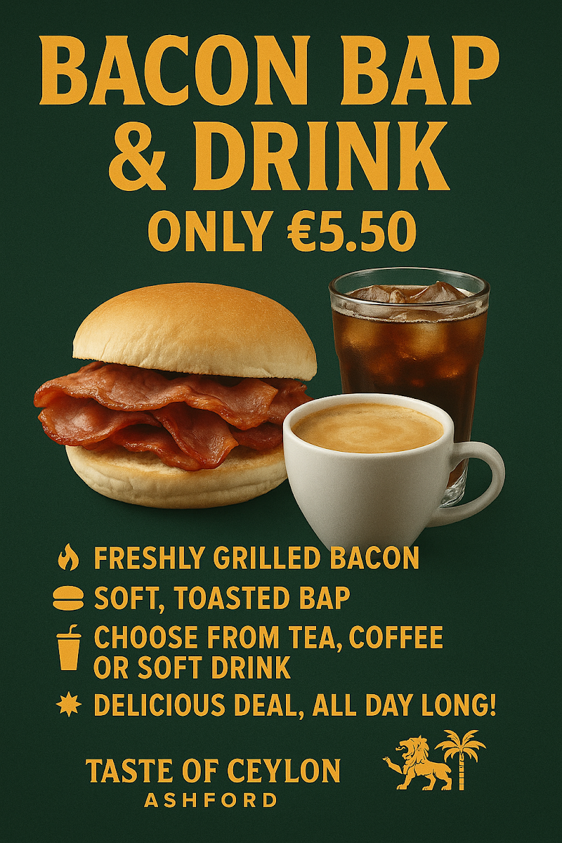 The menu at Taste of Ceylon Ashford offers a relaxed blend of traditional Sri Lankan dishes alongside familiar café-style options, making it easy to enjoy a casual meal at any time of day. Whether you're stopping by for a comforting all-day breakfast paired with a warm drink or settling in for a hearty lunch or dinner, the selection provides a considerate balance of flavors and textures.
